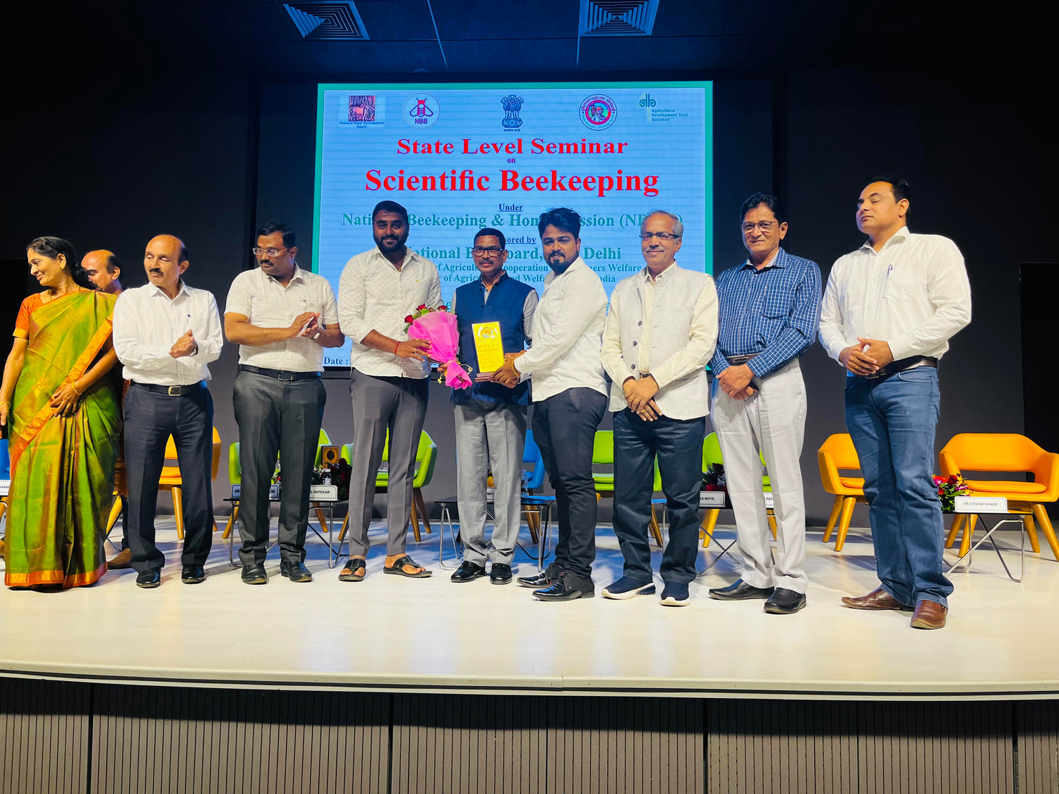 A prestigious award function unfolded at the Agricultural Development Trust in Baramati, Maharashtra. The event showcased the State Level Seminar on Scientific Beekeeping, hosted under the esteemed National Beekeeping & Honey Mission (NBHM), proudly sponsored by the National Bee Board Delhi. This exceptional gathering, organized in collaboration with the renowned Agricultural Development Trust Baramati and the National Dairy Development Board, Gujarat, celebrated the brilliance and dedication of Madhupushp Honey.