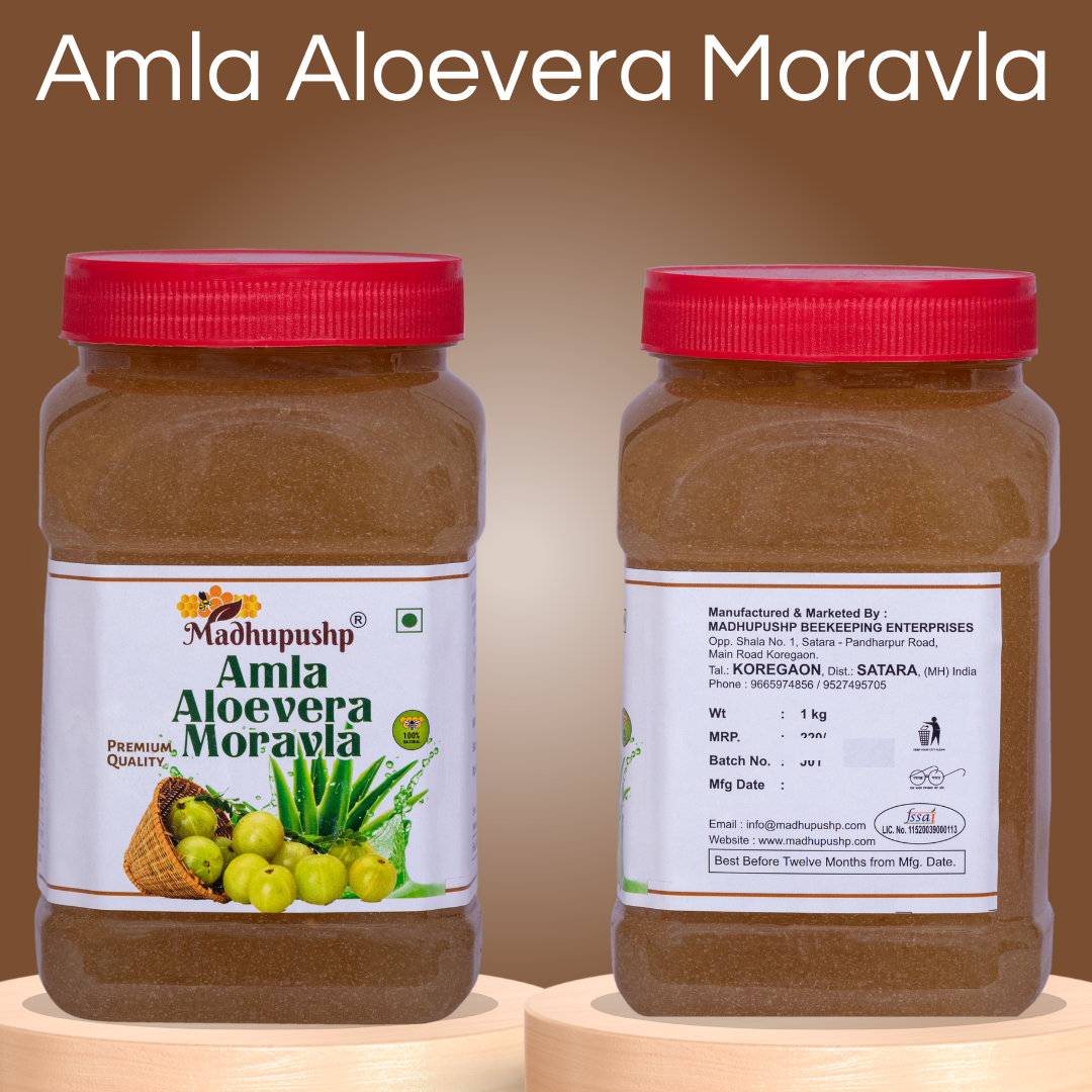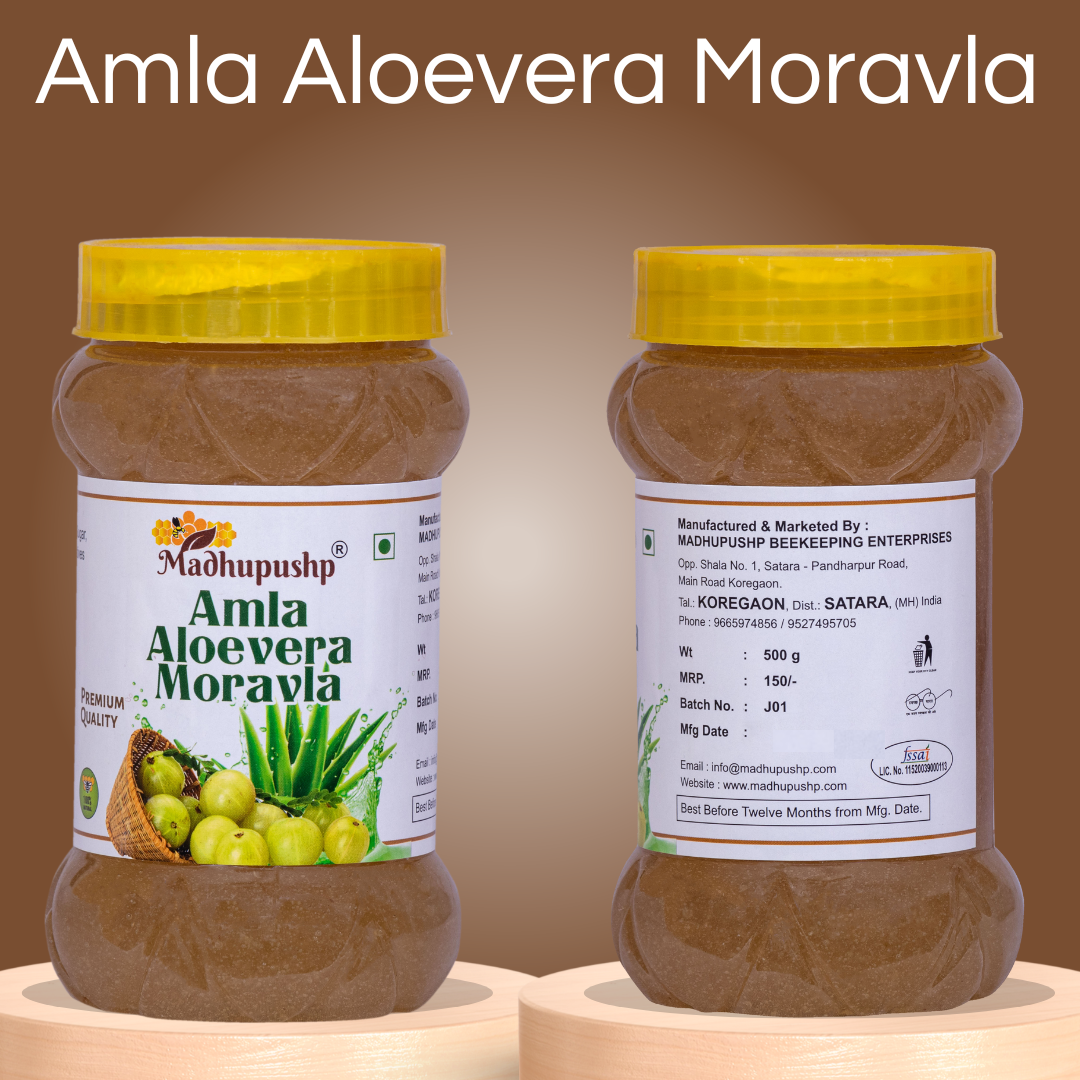 Experience the revitalizing power of Amla, Aloe Vera, and Moravala with Madhupushp Amla Aloe Vera Moravala and indulge in a delicious fusion of taste and health benefits.